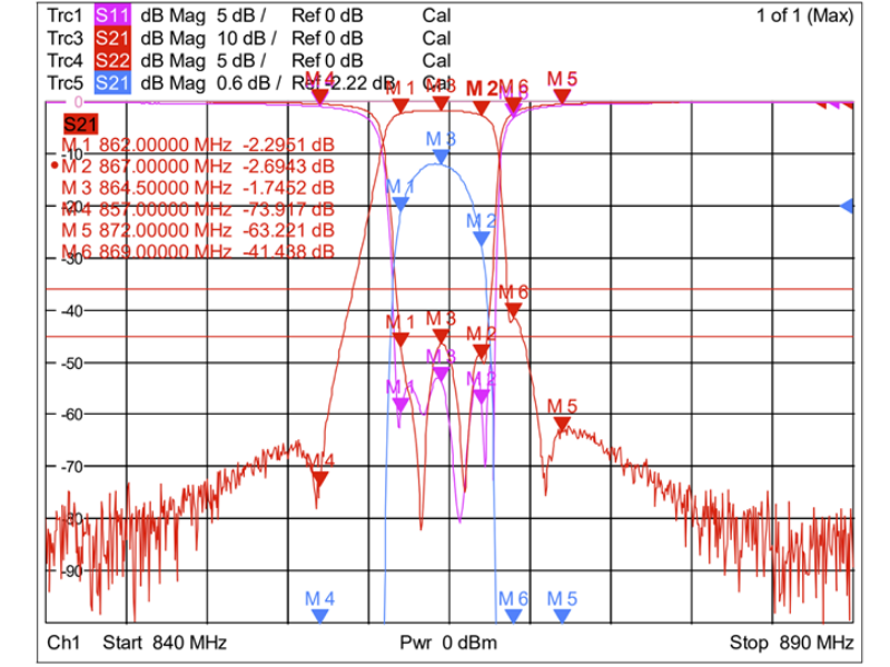 Таким образом, оптимальная характеристика — пропускание до 867 МГц и резкий спад начиная с 868–869 МГц.