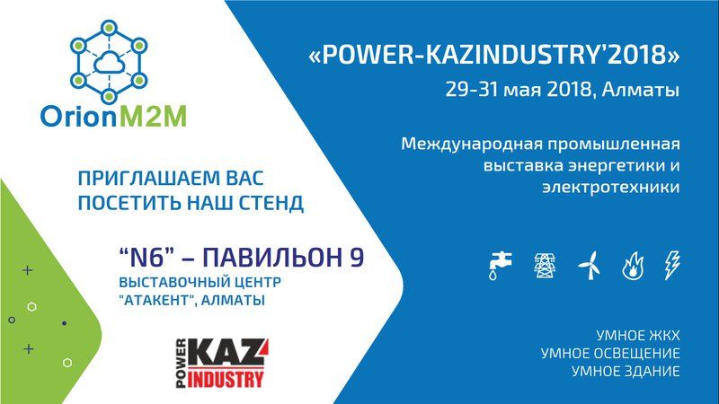 OrionM2M® примет участие в Международной промышленной выставке энергетики и электротехники «POWER-KAZINDUSTRY`2018» в Алматы 29-31 мая 2018 года.