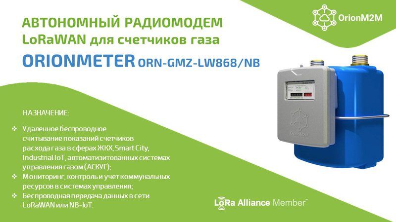Новинка! Радиомодем OrionMeter для приборов учёта газа Zenner на базе стандартов связи LoRaWAN®/NB-IoT