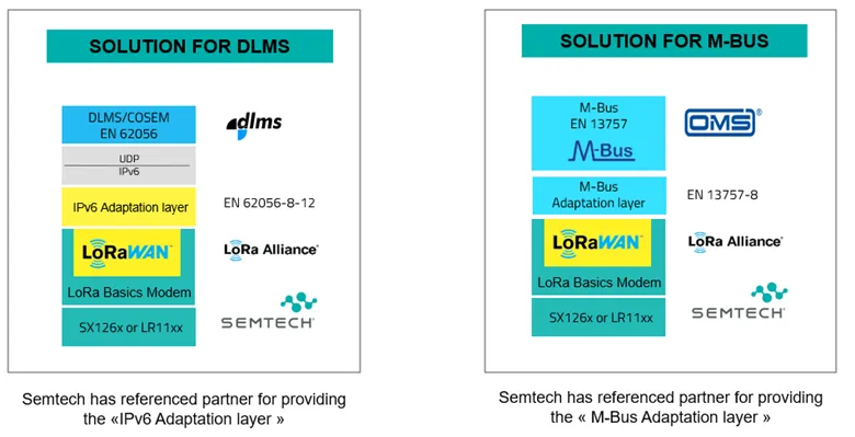 M-bus and DLMS are key standards that the Semtech LoRa Basics Modem software framework can support on many LoRa hardware platforms. The Meter OEMs can use this Semtech LoRa software and hardware platform to support the official adaptation layers required for M-bus and DLMS applications.